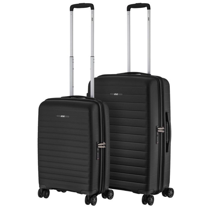 Набір валіз 2E, Aero, поліпропілен, (M+S), TSA, 4 колеса, EXP, чорний