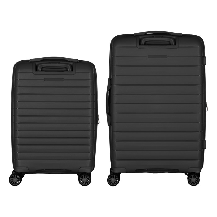 Жорсткий корпус виготовлено зі 100% поліпропілену, що забезпечує надзвичайну міцність за мінімальної ваги. Усередині валіз передбачено розділювачі та регульовані пакувальні паски для надійної фіксації речей, це організовує і впорядковує поклажу, і в такий спосіб забезпечується високий рівень комфорту та безпеки, що зробить подорож безтурботною.