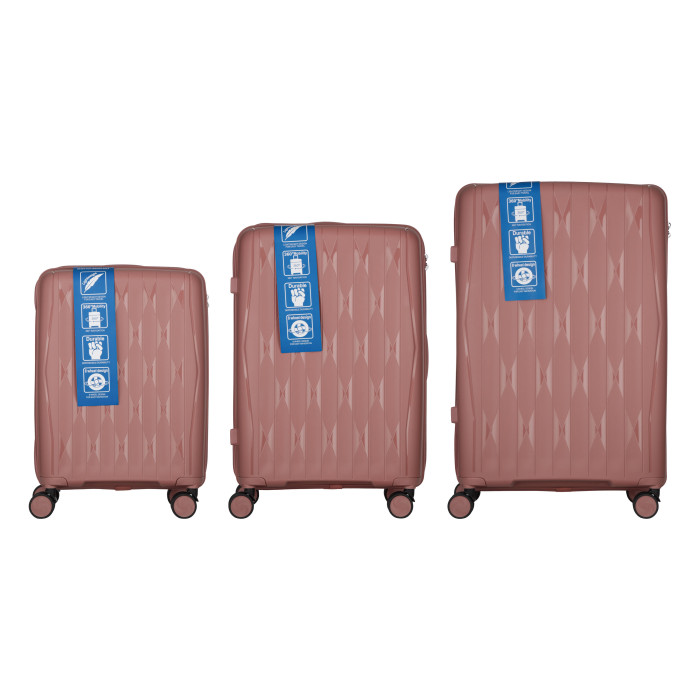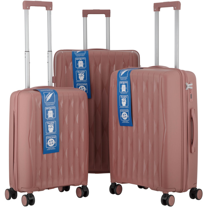 Набір валіз 2E, M7979, поліпропілен, (L+M+S), блискавка anti theft, 4 колеса, кодовий замок, рожево-золотий