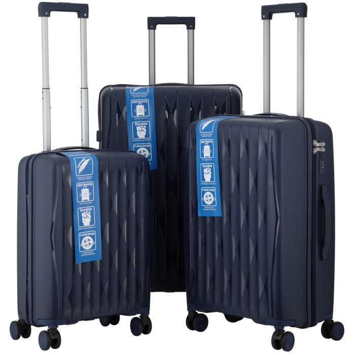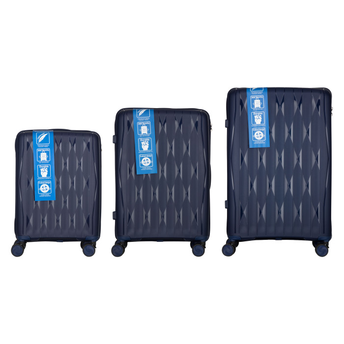 Набір валіз 2E, M7979, поліпропілен, (L+M+S), блискавка anti theft, 4 колеса, кодовий замок, темно-синій