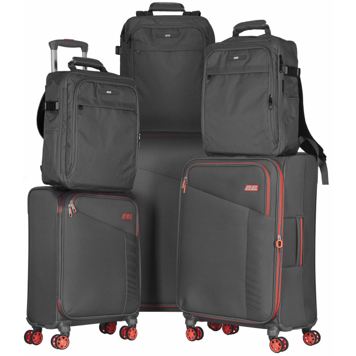 Набір валіз 2E, Trek, (L+M+S), TSA, 4 колеса, + 3 рюкзаки Cabin (2E-BPET-CABIN-GR), поліестр, сірий