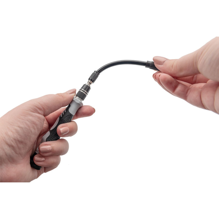 Набір інструментів DIGITUS містить великий вибір насадок для викруток і поставляється в зручній коробці, яку легко транспортувати та швидко готувати до використання. Наконечники викрутки виготовлені з високоякісної інструментальної сталі S2, тому міцні та довговічні. Зокрема, для ремонту смартфонів, встановлення комп’ютерних аксесуарів або для виготовлення моделей завжди доступна відповідна насадка для викрутки.