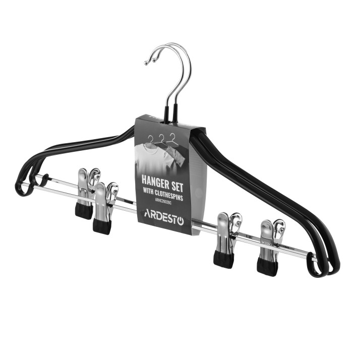 Набір вішаків з прищіпками ARDESTO 42см, 2шт, метал, ПВХ, чорний