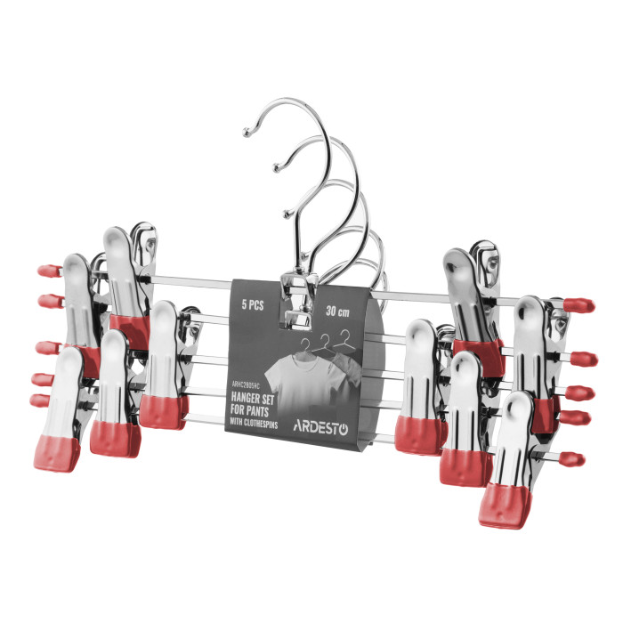Набір вішаків з прищіпками для штанів ARDESTO 30см, 5шт, метал, ПВХ, червоний