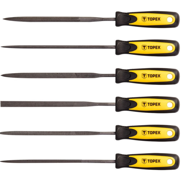 Набір напилків голчастих по металу TOPEX довжиною 150 мм і діаметром 3 мм. Призначені, переважно, для прецизійного шліфування металу. Шість універсальних форм дозволяють використовувати їх у різних сферах. Двокомпонентна ручка ергономічної форми дуже зручно міститься в долоні, що забезпечує високий комфорт праці. Марка TOPEX адресована майстрам, які займаються дрібним ремонтом.