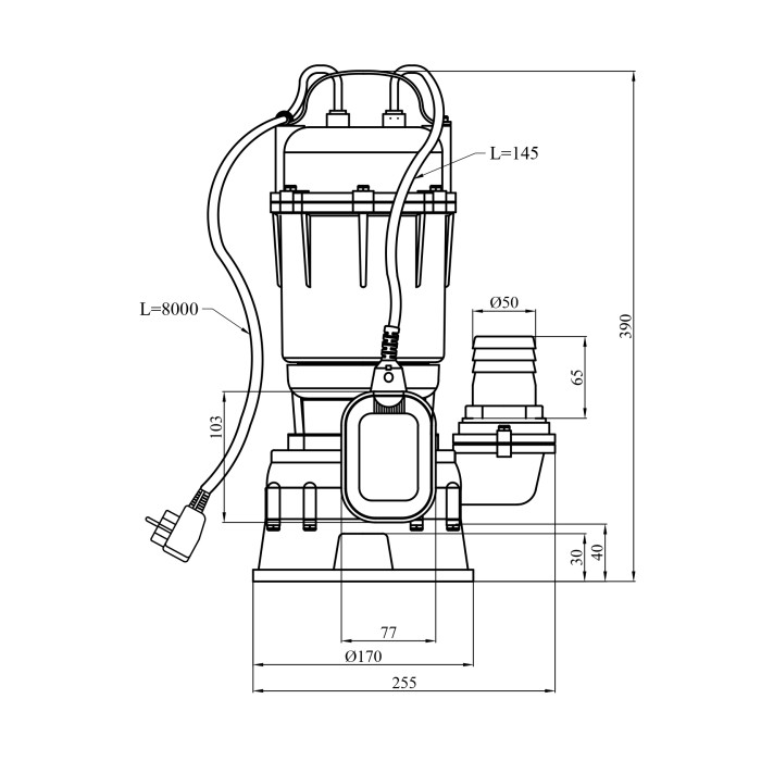 - Комплексний захист: вбудований термозахист двигуна і поплавковий вимикач значно підвищують безпеку і надійність експлуатації.