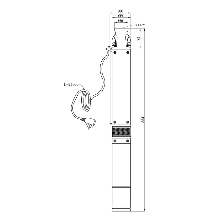 Зовнішній діаметр насоса становить 88 мм, що дозволяє його встановлення у вузькі свердловини.