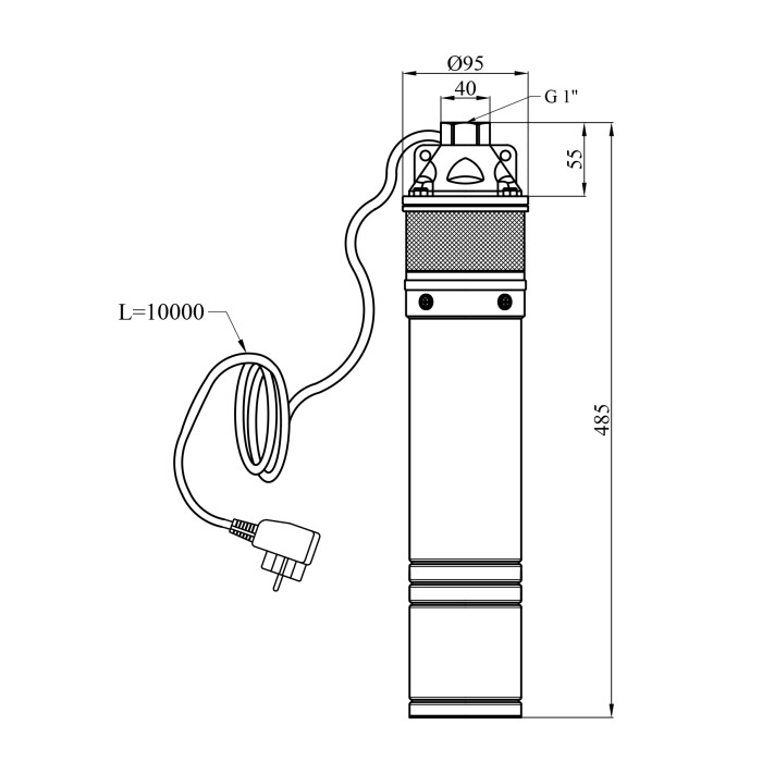 Насос глибинний відцентровий 4SKM 100C Hmax 61 м Qmax 45 л/хв P 750 Вт з вбудованим конденсатором