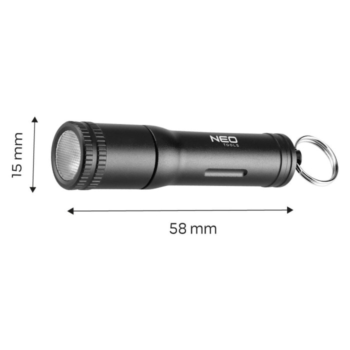 Neo Tools Ліхтар ручний на батарейках, міні, AAAх1, 100лм, алюмінієвий, 6см, 9г, IPX4