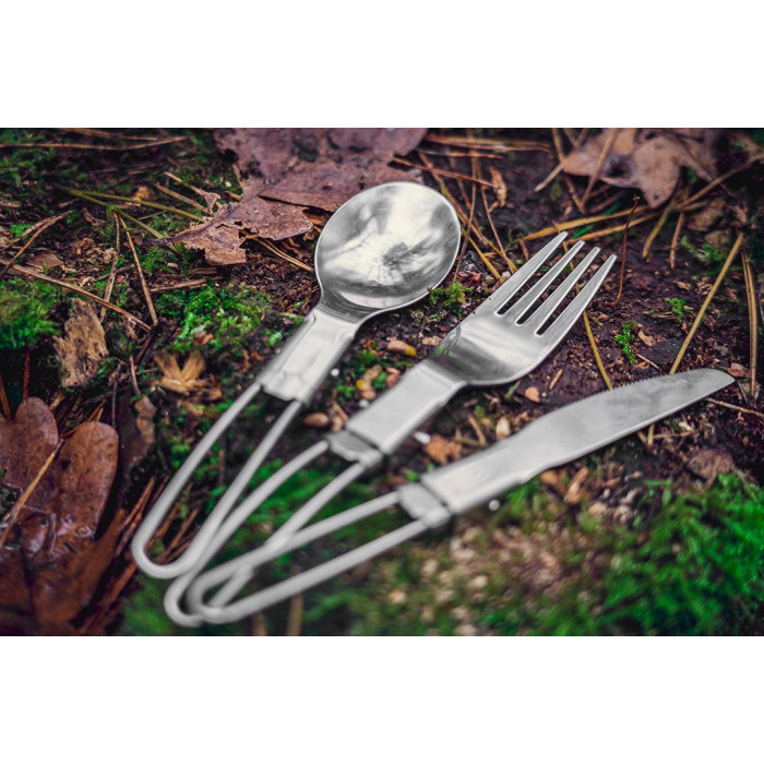 Neo Tools Набір посуду туристичного, 3в1, складні ніж,ложка,вилка, сертифікат LFGB, чохол, 0.07кг