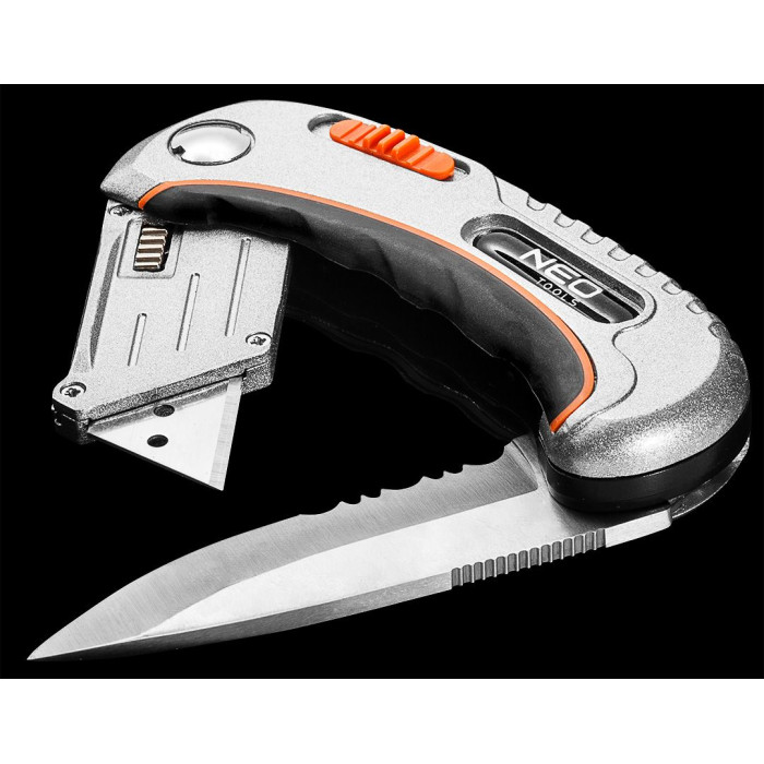Універсальний складаний ніж Neo Tools 63-710 - це основний інструмент як для професіонала, так домашнього майстра. Це інноваційний інструмент, що поєднує в собі ніж із трапецієподібним лезом та монтерський ніж (2 наконечники).