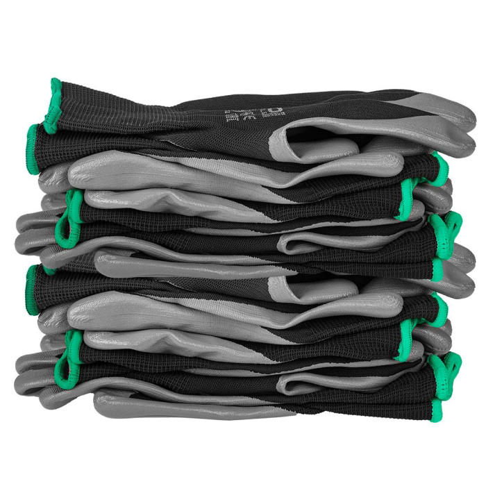 Neo Tools Рукавички робочі комплект 12шт, поліестер з нітриловим покриттям, р.8, сіро-чорний