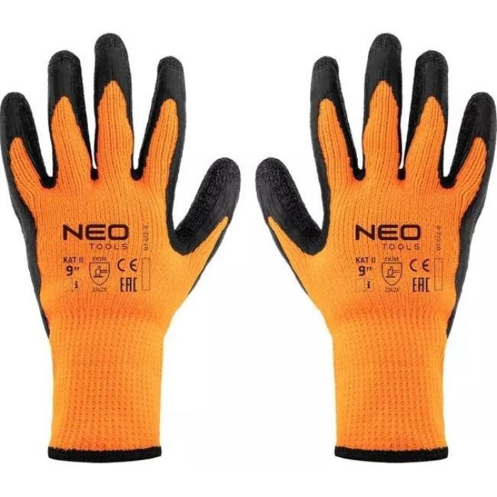 Neo Tools Рукавички робочі, латексне покриття, поліестер, р.9, помаранчево чорні