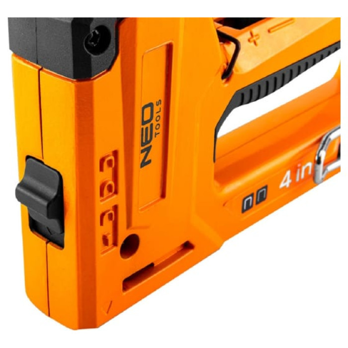 Neo Tools Степлер, алюмінієвий, 4 в 1, 6-14 мм, тип скоб J, G, L, E, регулювання забивання скоб