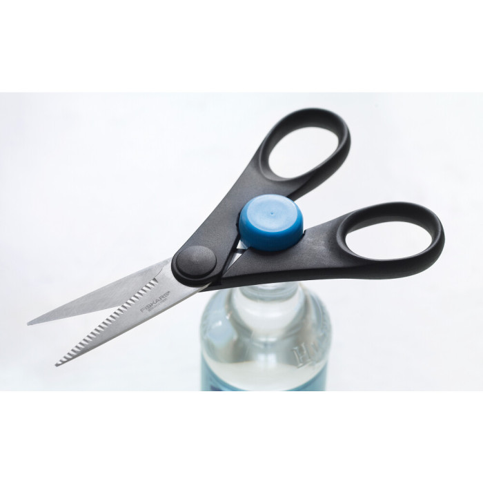 Ножиці кухонні Fiskars Essential, з відкривачкою для пляшок, 20см, нержавіюча сталь, пластик, чорний