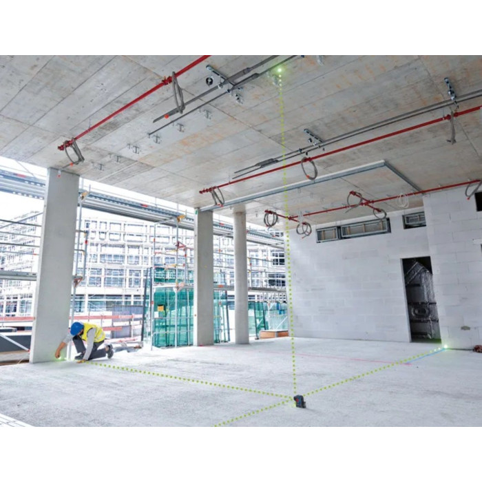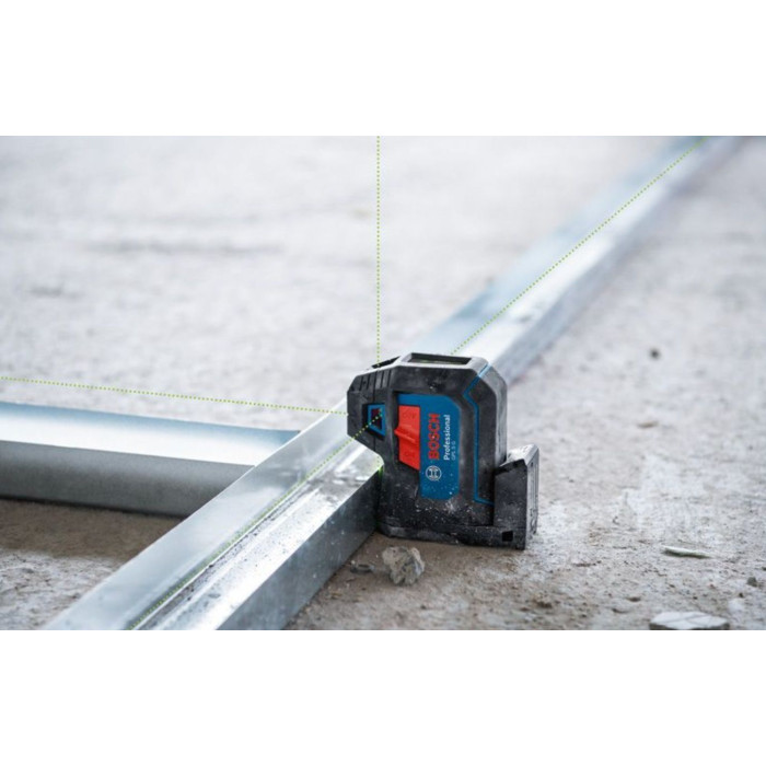 Лазерний нівелір Bosch Professional GPL 5G проєктує 5 зелених точок для точного перенесення та вирівнювання на відстані до 30 м. Компактний корпус вагою 0.35 кг, похибка лише ±0.35 мм/м та захист у чохлі роблять його надійним інструментом для монтажних і будівельних робіт.
