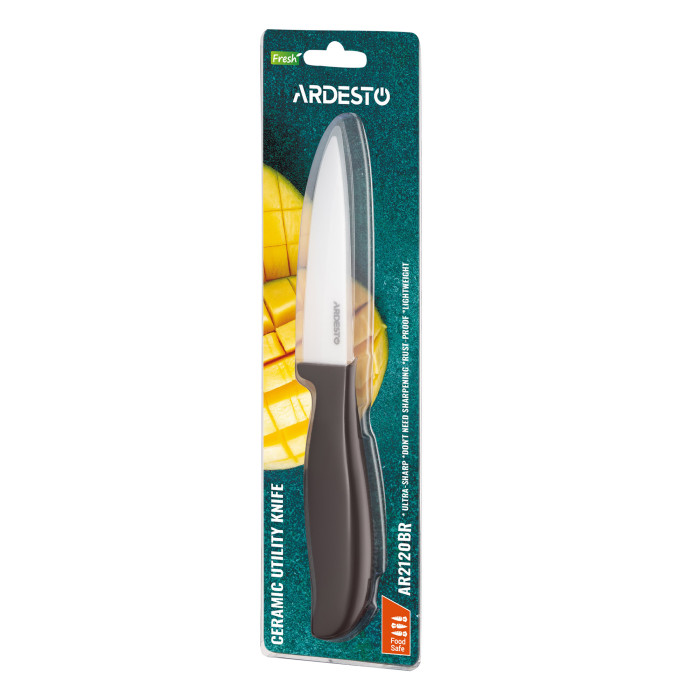 Ніж керамічний універсальний Ardesto Fresh, 10см, кераміка, пластик, коричневий