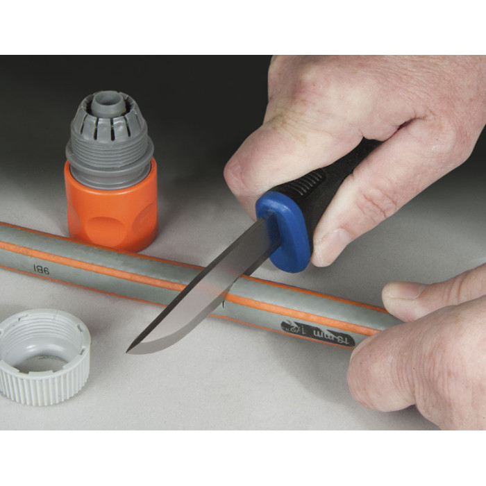 Ніж "FatMax" універсальний з лезом з нержавіючої сталі. Лезо ножа загартовано до твердості 60 HRC для додаткової міцності та тривалого терміну служби. Лезо відшліфоване і заточене. М'яке на дотик руків'я для комфорту при тривалому використанні. Чохол з тримачем для носіння на поясі для зручності експлуатації. Найкращий вибір для використання в умовах високої вологості, особливо біля водойм з солоною водою. Лезо з нержавіючої сталі товщиною 2.5 мм. Довжина леза 92 мм (3 5/8").