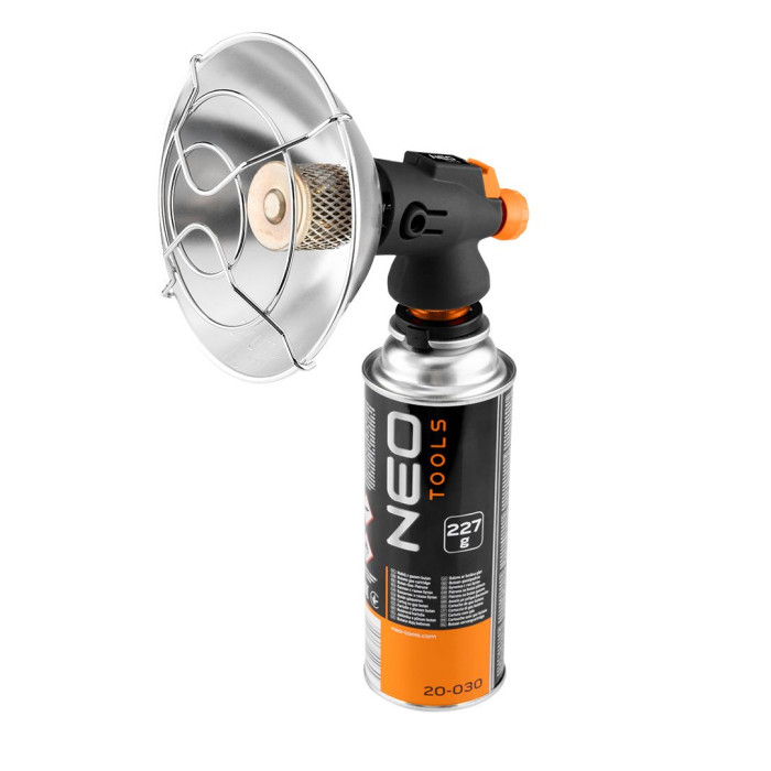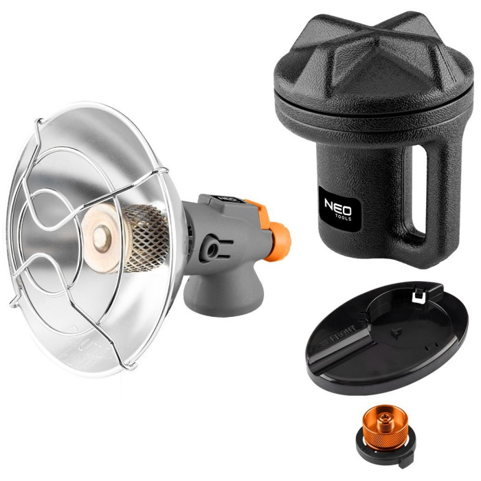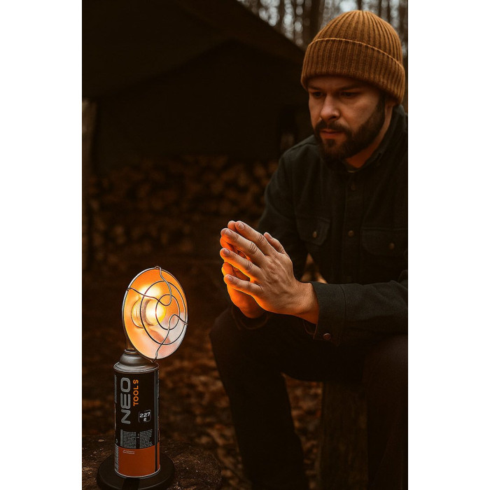 Обігрівач газовий туристичний Neo Tools, 92г/год, картриджний, регулятор, п'єзопідпал, чорний