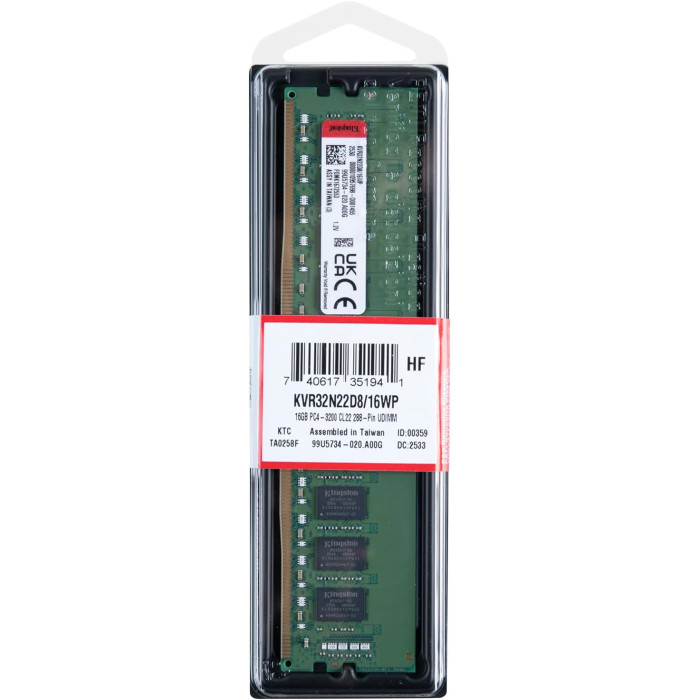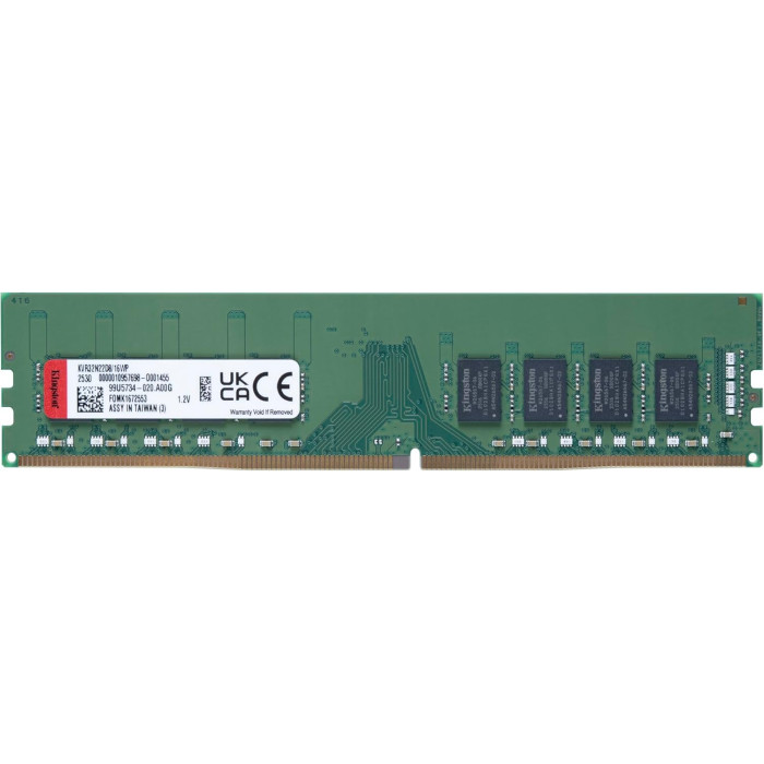 Оперативна пам'ять Kingston DDR4 16 ГБ забезпечує швидкодію на рівні 3200 МГц для ефективної роботи комп'ютера. Модуль відповідає стандарту JEDEC з таймінгами 22-22-22 на напрузі 1,2 В. Архітектура з вісьмома компонентами FBGA забезпечує стабільну роботу під час щоденного використання. Модуль сумісний з системами, що потребують енергоефективних рішень.