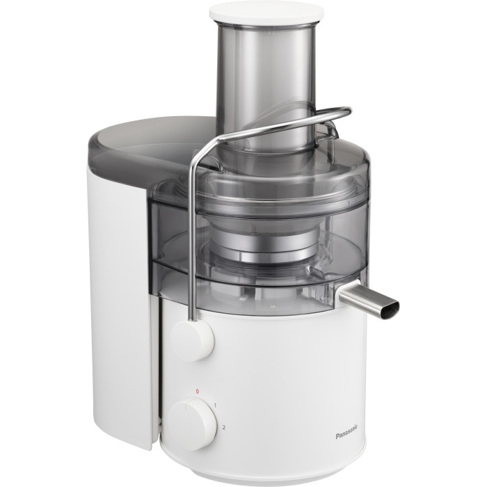 Соковитискач Panasonic відцентрований 1000Вт, чаша-1.5л, жмих-2л, жолоб на ціле яблуко, пластик/метал, білий