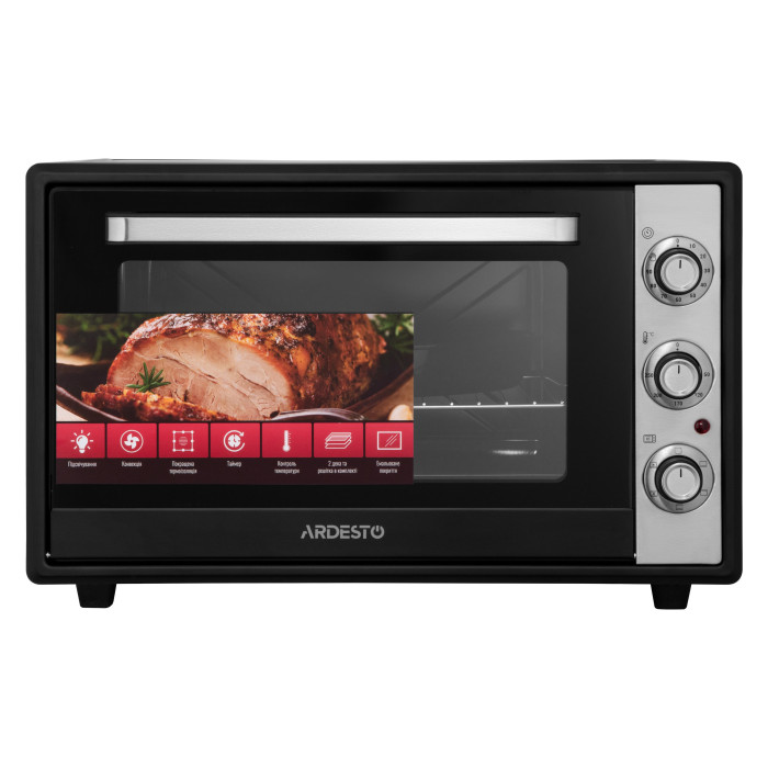 Піч електрична ARDESTO, 60л, 2000Вт, механіч., конвекція, подвійне скло, чорний