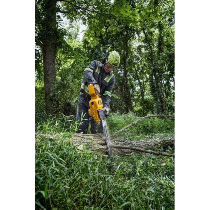 Акумуляторна ланцюгова пила DeWalt DCMCS575N XR FLEXVOLT 54В — потужний безщітковий інструмент із шиною OREGON завдовжки 50 см. Забезпечує ефективне розпилювання деревини, має вагу 5,7 кг та постачається без акумулятора і зарядного пристрою.