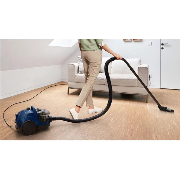 Зручне користування важливе під час прибирання. Контейнер для пилу витягується одним натисканням кнопки, не втрачаючи пилу. Завдяки своїй круглій формі контейнер легше чистити, оскільки бруд не потрапляє в кути.