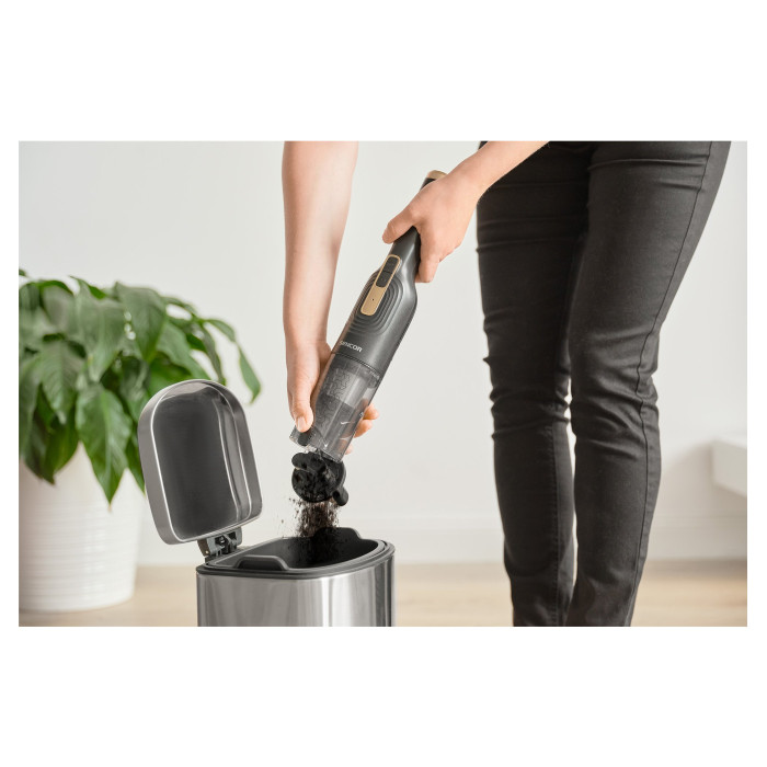 Бездротовий ручний пилосос Sencor SVC 308BK пропонує швидке та просте рішення для щоденного прибирання, видалення пилу або раптових нещасних випадків. Дуже легкий, але потужний помічник для ефективного очищення всіх типів поверхонь. Повна свобода рухів без шнура живлення. Завдяки зарядній базі він завжди повністю заряджений і готовий до наступного чищення. Два аксесуари забезпечують зручне видалення пилу з меблів, столу чи автомобіля.