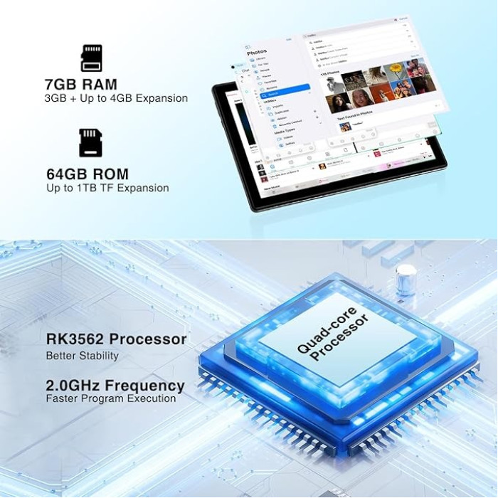 Планшет Doogee Tab U9 відкриває нову еру візуальних технологій з його 10,1-дюймовим IPS HD-дисплеєм, забезпечуючи неперевершену якість зображення. Цей екран не просто відображає вміст; він занурює вас у нього, перетворюючи перегляд відео, читання книг або серфінг в інтернеті на захоплюючу пригоду. З яскравістю 300 нит, Doogee U9 гарантує, що ваше зображення залишиться ясним і живим навіть за яскравого сонячного світла. Цей широкий діапазон кольорів дає можливість побачити зображення та відео в їхній справжній красі, з яскравими та точними відтінками, які пожвавлюють кожен кадр. Незалежно від того, чи редагуєте ви фотографії, дивіться фільми або граєте в ігри, Doogee U9 забезпечує безпрецедентну глибину та яскравість кольору.