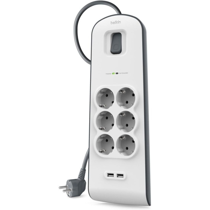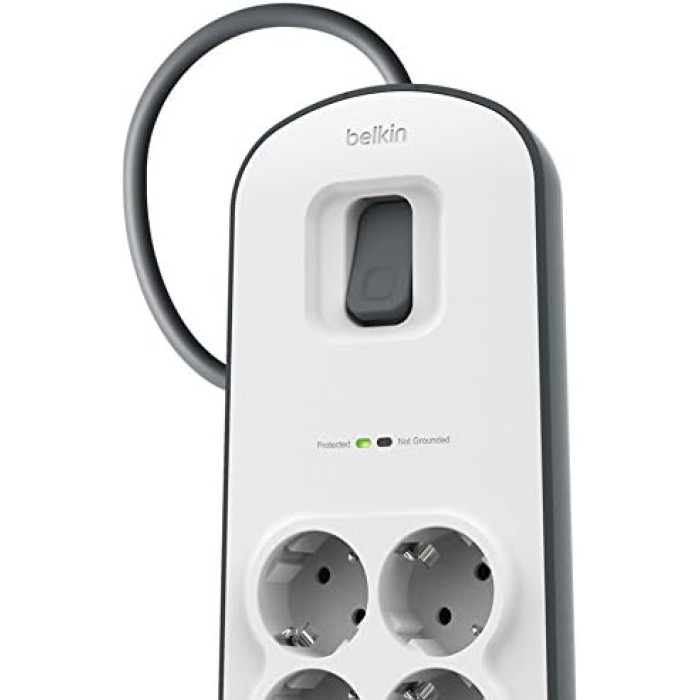 Belkin Surge Protectors захищає підключені пристрої від пошкодження внаслідок коливань напруги, удари блискавки та порушення в електроживленні. Захист від перепаду перенапруги може запобігти дорогому ремонту та втраті цінних даних та продовжити термін служби пристрою.