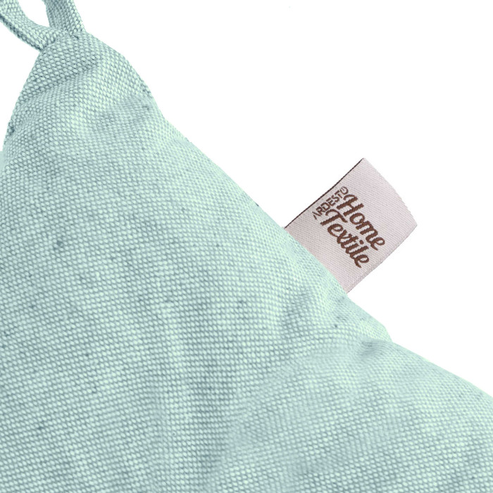 Подушка для стільця компактного розміру 40 × 40 см забезпечить не лише зручність, а й допоможе додати яскравих акцентів інтер’єру, адже виконана в стильному бірюзовому кольорі. Чохол вироблений зі 100 % бавовни, тоді як наповнювач складається з холлофайберу (50 %) та поліпропілену (50 %), що зумовлює комфорт. Для збереження первинного вигляду подушки варто дотримуватися рекомендацій щодо догляду: прати в машині за делікатного режиму (30 °C); не сушити в сушильній машині, а тільки у вертикальному положенні; прасувати за температури до 150 °C; також заборонено відбілювання та хімчистка.