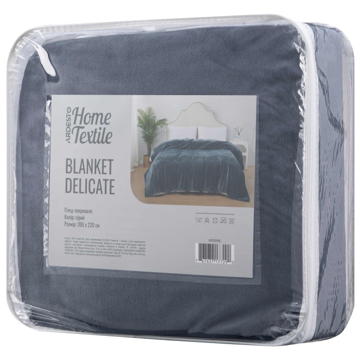 Покривало ARDESTO Delicate 200х220см, 100% поліестер, сірий