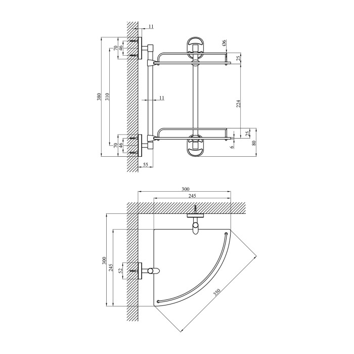 Полиця для ванної кімнати кутова Kroner KRM Elbe - ACG2907-2