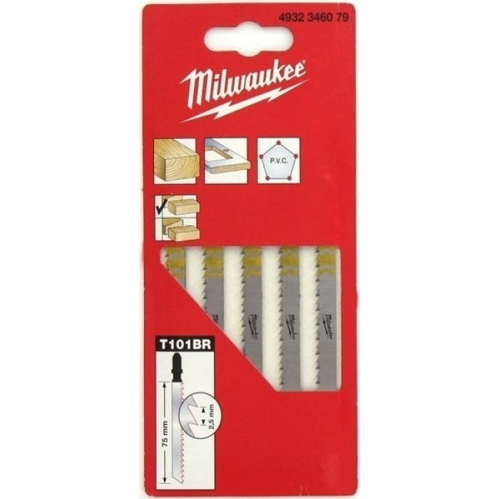 Полотно пиляльне для лобзика Milwaukee T101BR, по дереву, крок зуба 2.5ммх75мм, 5шт