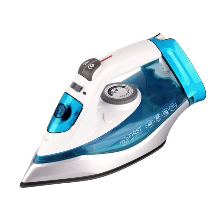 Синя парова праска з керамічною пластиною на 32 отвори, FA-5627-2-BU від First Austria. З цією праскою з потужністю 2720 Вт і подачею пари 30 г/хв ви можете легко прасувати свої тканини, забезпечуючи бездоганний зовнішній вигляд без складок з вашими улюбленими речима! Для сильно м’ятих тканин оберіть функцію інтенсивної пари з опцією вертикального прасування, особливо для штор, тканин, що висять, тощо.