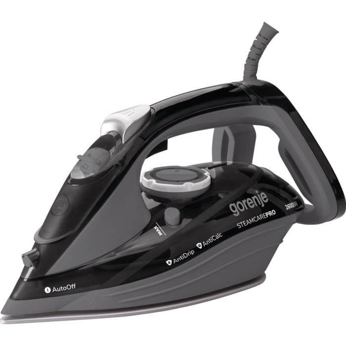 Праска Gorenje, 2600Вт, 350мл, паровий удар 95гр, верт. відпарювання, антинакип, автовідключення, керам. підошва, сіро-чорний