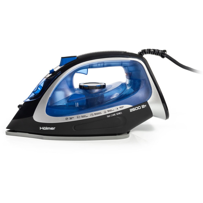 Праска Hölmer HIC-2640 для сухого прасування і з парою, має потужність 2600 Вт (час нагріву max ~ 30 сек), паровий удар 140 г/хв, постійну подачу пари 40 г/хв. Керамічна підошва забезпечує легке ковзання по тканинах різних типів, не створює складок, повністю розгладжує всі ділянки.