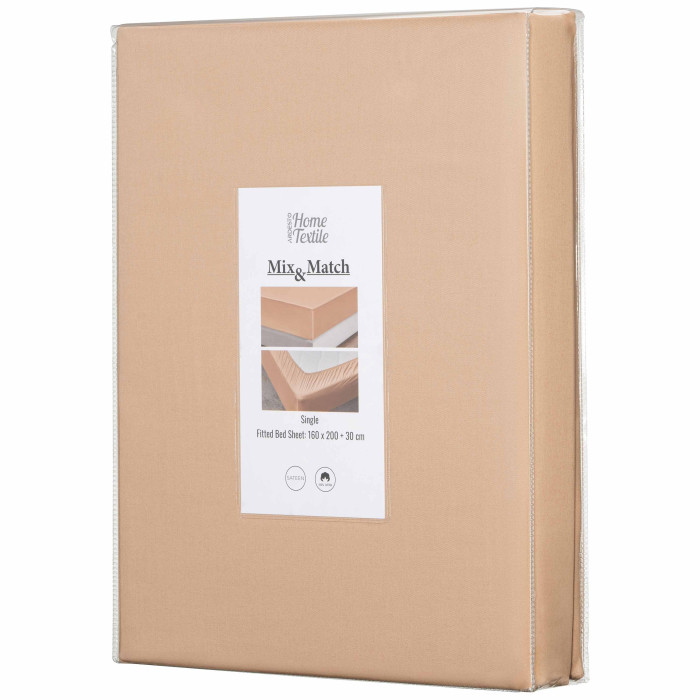 Простирадло на резинці ARDESTO Mix&Match, 160х200+30см, 100% бавовна, сатин, бежевий
