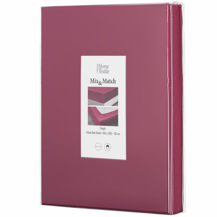 Простирадло на резинці ARDESTO Mix&Match, 160х200+30см, 100% бавовна, сатин, бордовий