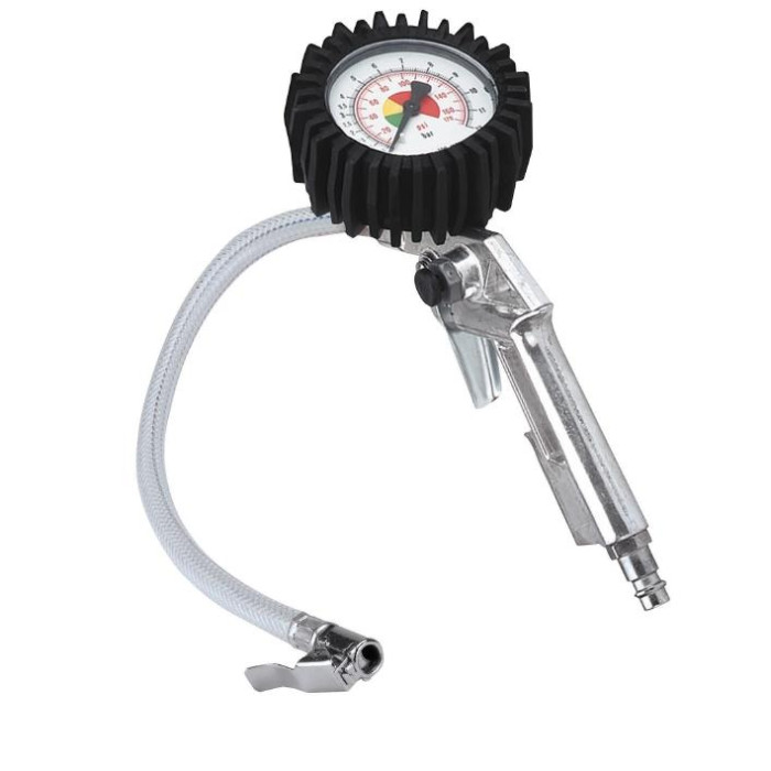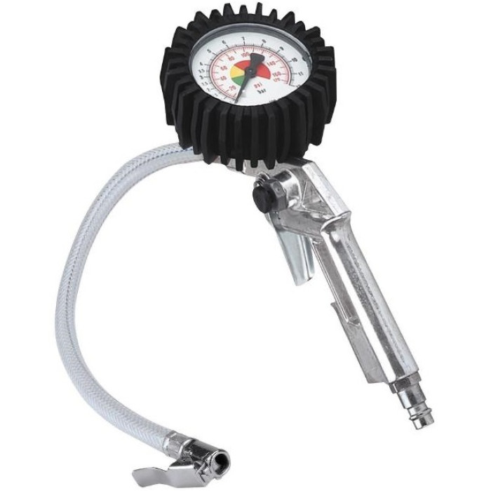 Пневматичний пістолет для підкачування шин із манометром Einhell – інструмент, застосовуваний для підкачування шин в автосервісах і шиномонтажних майстернях. Обладнаний манометром, який дає змогу контролювати тиск у шинах під час підкачування. Пневмопістолет має гнучкий шланг, який дає змогу працювати у вузьких і важкодоступних місцях.