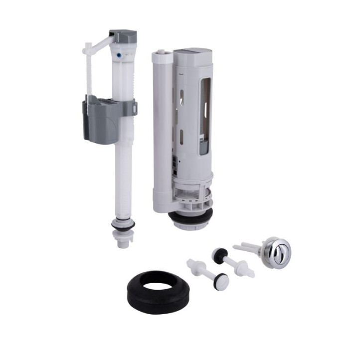Комплект арматури для бачка унітаза Qtap HY2 (Kalao) (арт. QT066HY2CHR) з подвійною круглою кнопкою зливу 4,8 см і клапаном нижнього підведення води (3/6 л) забезпечує ефективну та економну роботу. Міцна конструкція гарантує довговічність.