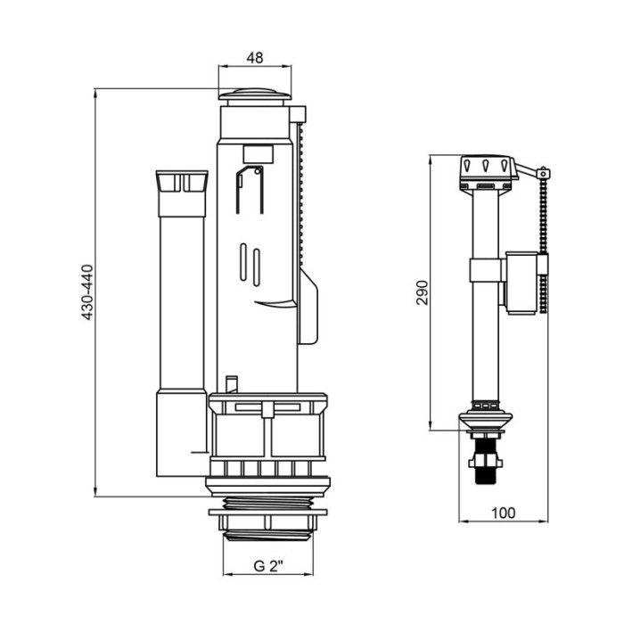 Зливна арматура, клапан подачі води.