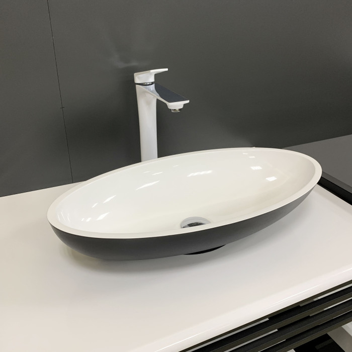 Раковина, умивальник Adamant ANDERE NEW, штучний камінь, овальна, без отвору для змішувача та переливу, 590х295х130мм, накладний, чорно-білий