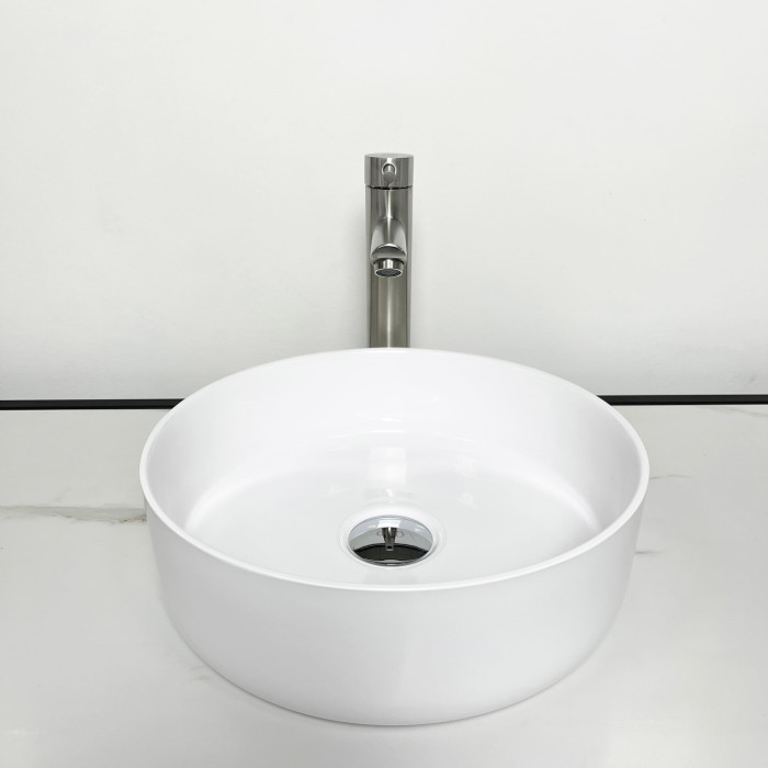 Раковина, умивальник Adamant ARENA, штучний камінь, кругла, без отвору для змішувача та переливу, 360х113мм, накладний, білий