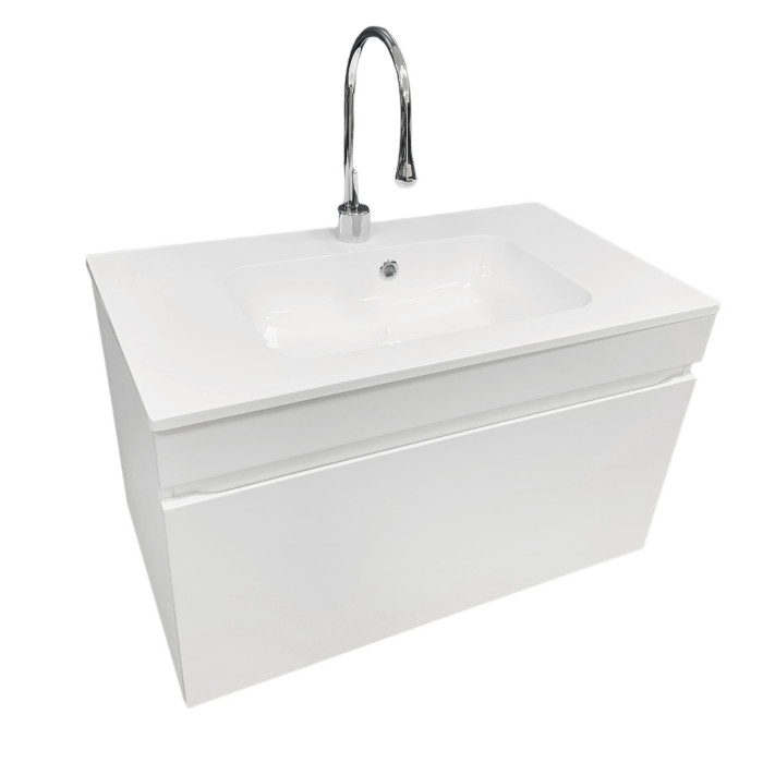 Раковина, умивальник Adamant FRATE, штучний камінь, прямокут., з отвором для змішувача, з отвором для переливу, 795x450x125мм, накладний, білий