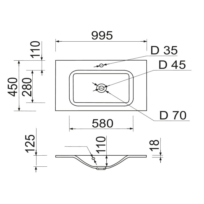 Раковина Adamant FRATE має прямокутну форму, виготовлена зі штучного каменю з розмірами 995 x 450 x 125 мм та білим кольором. Накладний тип встановлення з отворами для змішувача та переливу дозволяє монтаж на тумбу. Мате... Читати далі...
