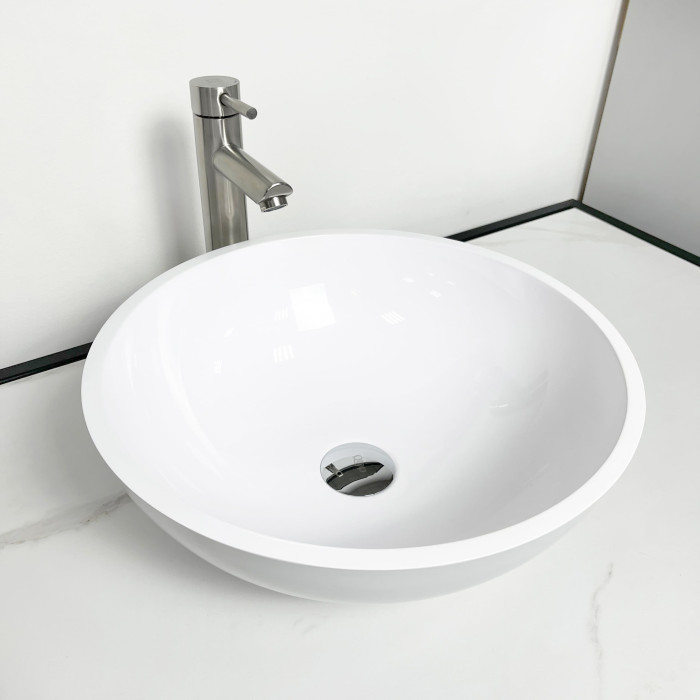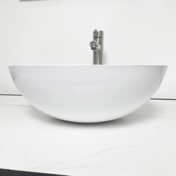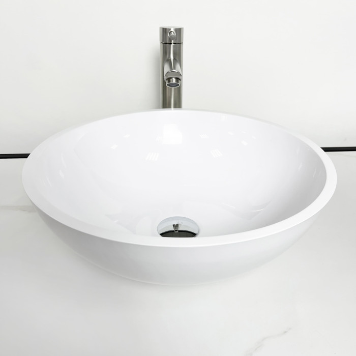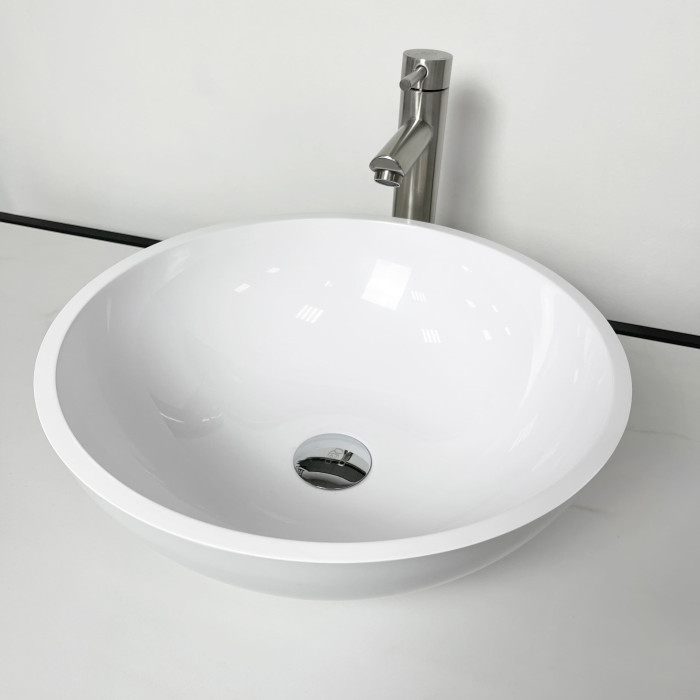 Раковина, умивальник Adamant KREIS, штучний камінь, кругла, без отвору для змішувача та переливу, 420х150мм, накладний, білий