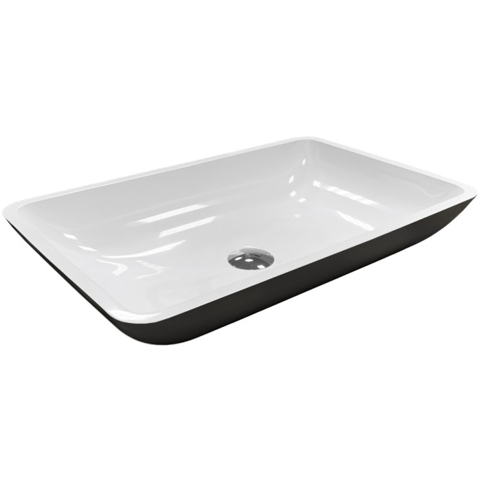 Раковина, умивальник Adamant LOWER, штучний камінь, прямокут., без отвору для змішувача та переливу, 560x360x100мм, накладний, чорно-білий