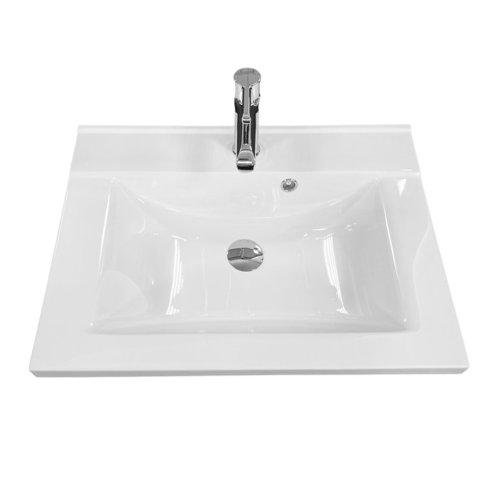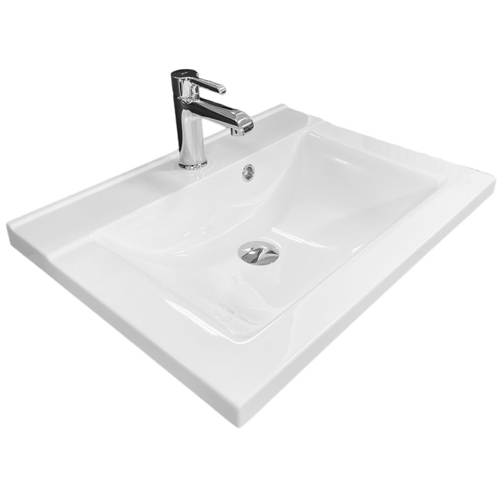 Раковина, умивальник Adamant QUANTO, штучний камінь, прямокут., з отвором для змішувача, з отвором для переливу, 600х447х140мм, накладний, білий